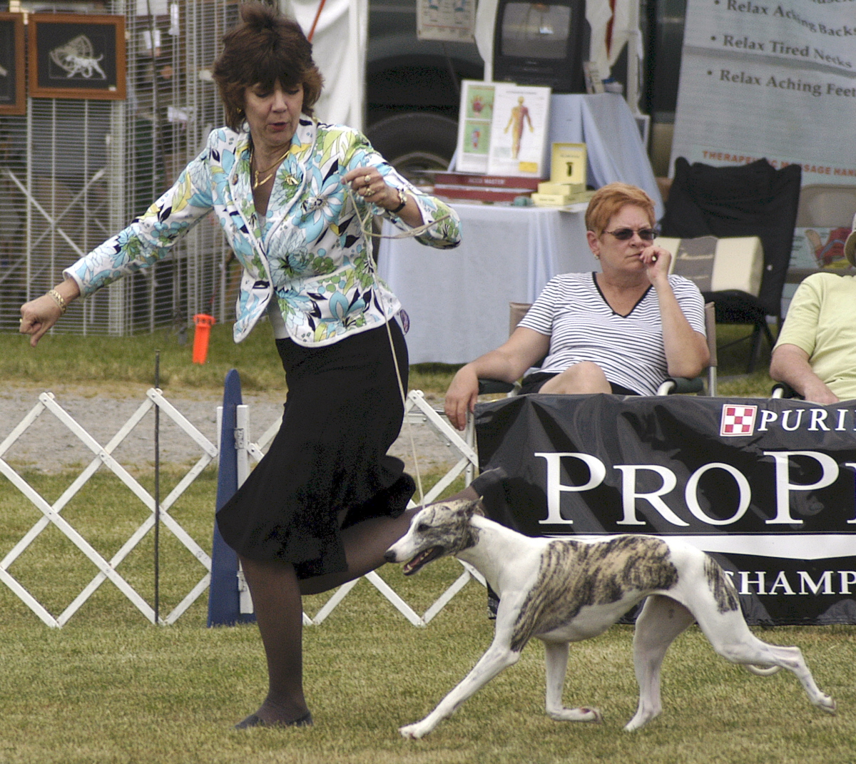 Breeder-Owner-Handled by Kerrie Kuper We consider her one of the Whippets that comes closest to our interpertation of the Whippet standard in almost 40 years in the breed. She was ranked #5 Whippet in the Country as of May 2007 (Canine Chronicle). She ended up a Top Ranked Whippet for 2007. She is NUMBER ONE WHIPPET IN THE USA FOR 2008!!! (CanineChronicle/AKC All Systems). Artistry is owned by Kerrie Kuper and Neil Barthelette and is co-bred by Kerrie Kuper (Karasar Kennels)and O. Light.